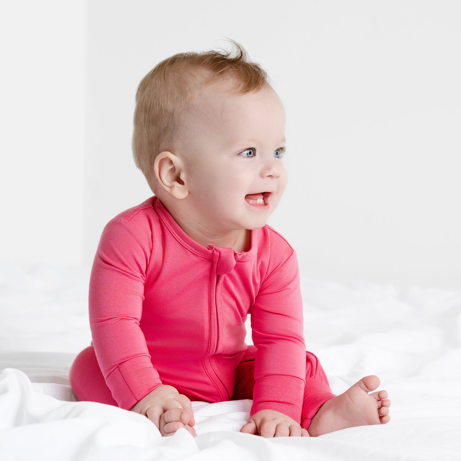 Introducing Flamingo Convertible Romper – a year-round staple in gorgeous bubble gum pink part of our Signature Solids Collection! Luxuriously crafted from eczema-safe, moisture-wicking bamboo, this romper ensures comfort anytime. Unique convertible feet extend wear, while built-in grips enhance walking stability.